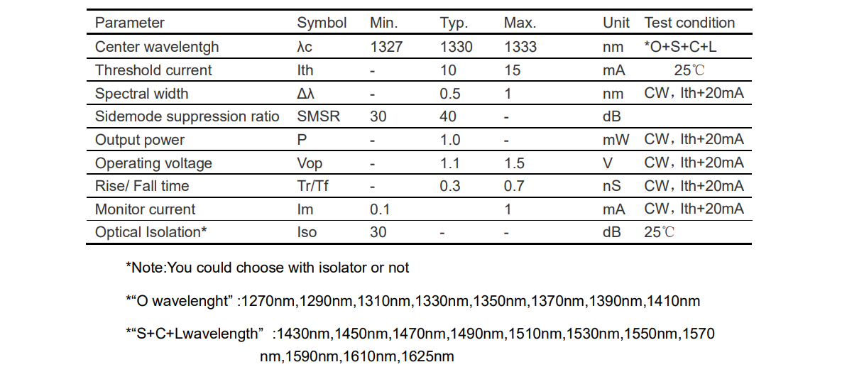 1330nm DFB CWDM 激光器组件