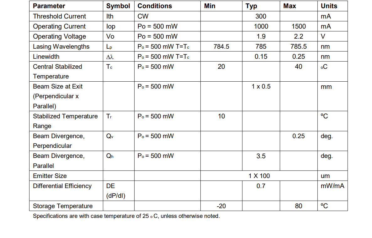 785nm 500mW narrow linewidth Wavelength Stabilized Laser